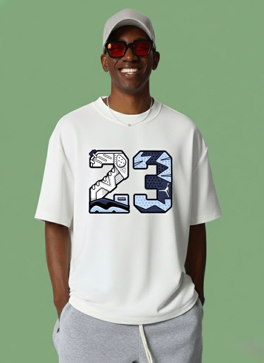 Elevate your everyday look with our oversized 23 Sneaker Graphic Tee. Crafted from soft, breathable cotton, this white t-shirt features a bold, street-inspired designed with layered patterns and modern detailing. The relaxed fit ensures all-day comfort, while the versatile style pairs effortlessly with joggers, denim or shorts.
